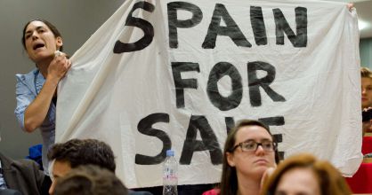 Un grupo de personas con una pancarta que dice "España en venta" /