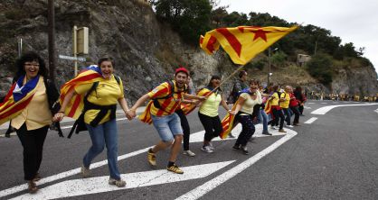 La Asamblea Nacional Catalana logra su objetivo de que una cadena humana cruce Cataluña de punta a punta