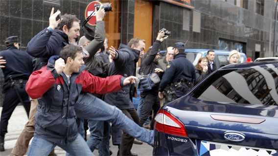 Empujones y patadas al coche de Fabra por el cierre de Canal 9
