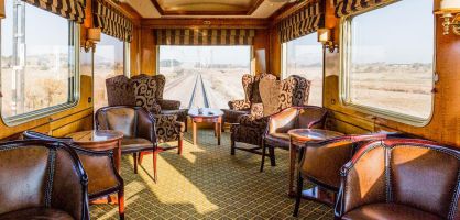 Salón del Blue Train, el tren de lujo que une Sudáfrica. / BLUE TRAIN