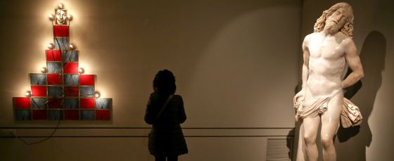 En la sala dedicada a Las visitaciones y la iconografía del arte español del siglo XV se ve a la Virgen de la Merced, de Zurbarán, junto a una fotografía de Marcos López en la que una joven morena mira desafiante a la cámara con una corona de cuchillos sobre una melena negra. El famoso óleo de las meditaciones de San Juan Bautista de El Bosco está ahora acompañado de una fotografía de Horacio Coppola en la que dos cuerpos desnudos toman el sol boca abajo. El juego se extiende inagotable por toda la colección hasta llegar, de sorpresa en sorpresa, hasta la parte alta dedicada a cerámica, vajilla, vidrio y platería. Un vídeo de Gabriela Golder muestra una sucesión de mujeres que tras mirar a la cámara, estampan un plato contra el suelo.