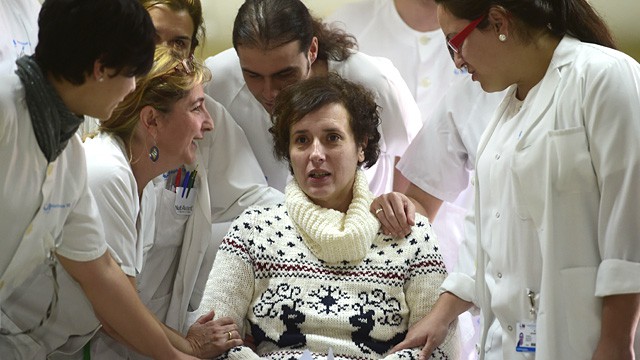 La auxiliar de enfermería que ha superado el ébola habla con los medios antes de salir del hospital Carlos III y pide "tranquilidad"