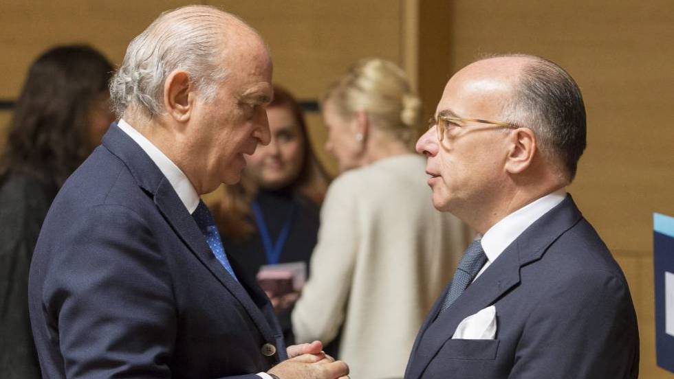 Jorge Fernández Díaz, junto a Bernard Cazeneuve. J. WARNAND / ATLAS ETA ocultaba en el zulo de Francia 145 armas de las robadas en Vauvert en 2006 P. O. D. Bruselas / Madrid 6