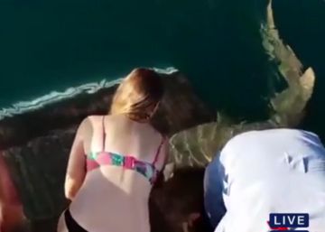 Un tiburón arrastra al agua a una mujer que intentaba alimentarlo