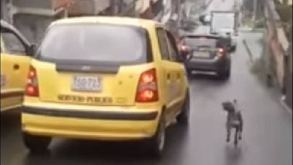 Un perro persigue el taxi en el que viaja su dueña después de que esta lo abandonara en Medellín