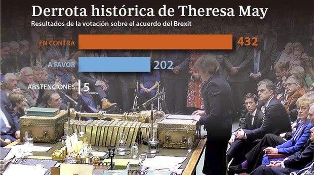 El Parlamento británico ha votado en contra masivamente del acuerdo de salida negociado previamente por el Gobierno de la primera ministra Theresa May con la Unión Europea