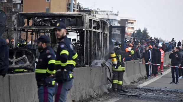 Milagroso rescate en Italia de 51 niños en un bus quemado por un senegalés