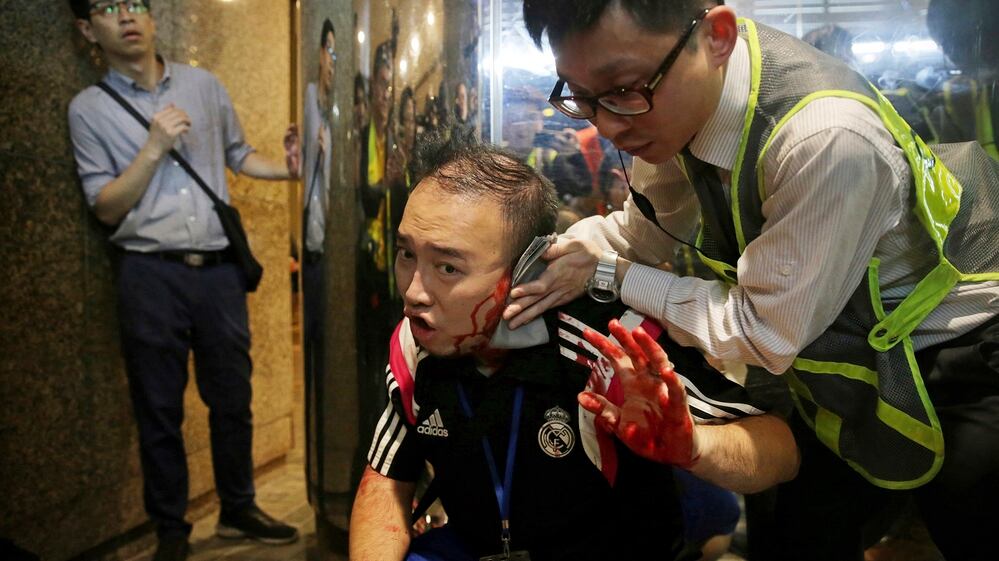 El terrible momento en que le arrancan la oreja de un mordisco a un concejal de Hong Kong