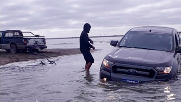 Cuando la marea te está por llevar el auto en El Cóndor... te salva Daniel