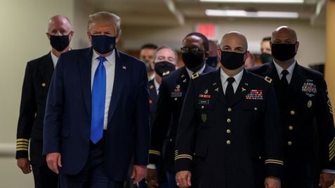Trump, con mascarilla en público, el 11 de julio. TASOS KATOPODIS / REUTERS Donald Trump busca recuperar protagonismo en seguridad y sanidad arrinconado por la crisis PABLO XIMÉNEZ DE SANDOVAL|Los Ángeles El presidente de EE UU retoma la batalla para excluir a los inmigrantes indocumentados de la encuesta del censo