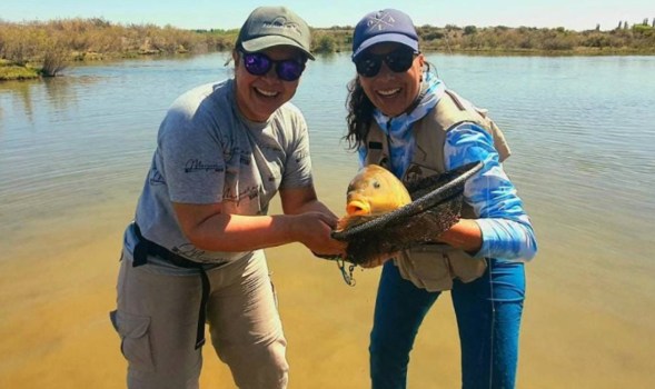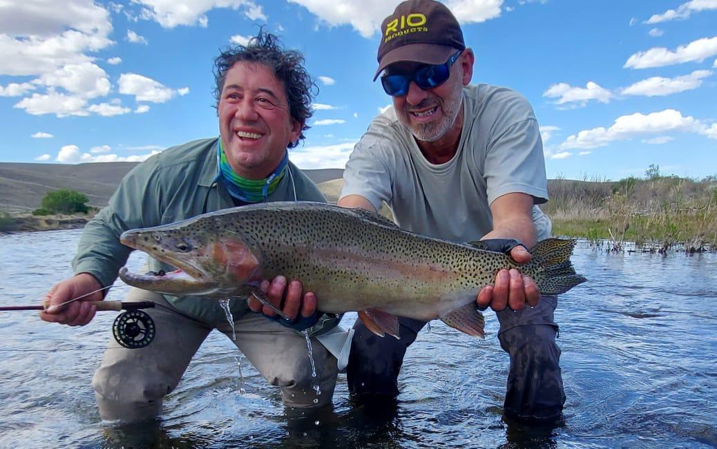 Es el guía quien continúa con el relato. «Fue en el segundo día de flotada, en una zona de canales y meandros, el agua estaba lenta al final de una isla. Cuando la clavó pensamos que era una trucha marrón grande. Cuando pude me fui a la orilla, pero había mucha correntada, no la pudimos acercar», relata Martín.