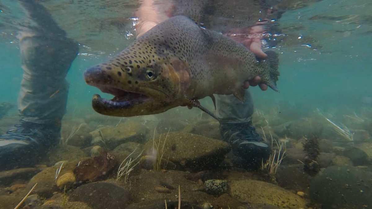 «Tuvimos que bajar otros 150 metros de donde la había clavado para poder acercarla. Cuando la vimos de cerca nos dimos cuenta de que era una trucha arcoíris muy grande«, continúa.