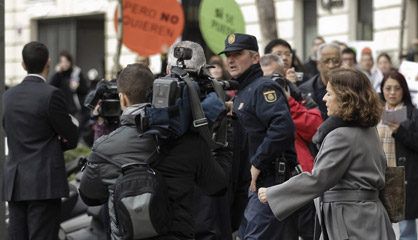PROTESTA DE LA PAH ANTE LA CÚPULA DEL PP Los activistas comienzan a "señalar" a los políticos para que aprueben la iniciativa popular. En la imagen, Ana Botella increpada al salir del Fórum Europa. / E. NARANJO (EFE)