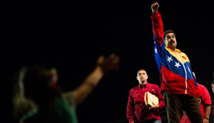 Nicolás Maduro levanta su puño ante seguidores en Maracaibo. /