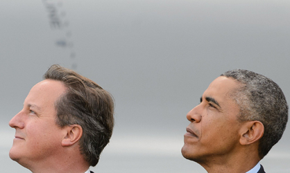 Cameron y Obama observan un ejercicio aéreo en la cumbre de la OTAN. /