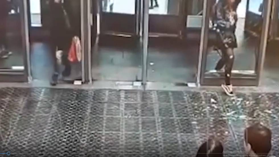 Una joven rompe una puerta tras distraerse con su teléfono