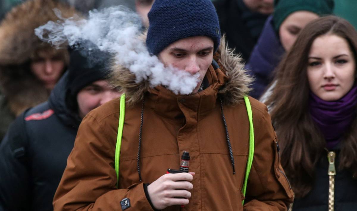 Un joven con un cigarrillo electrónico.