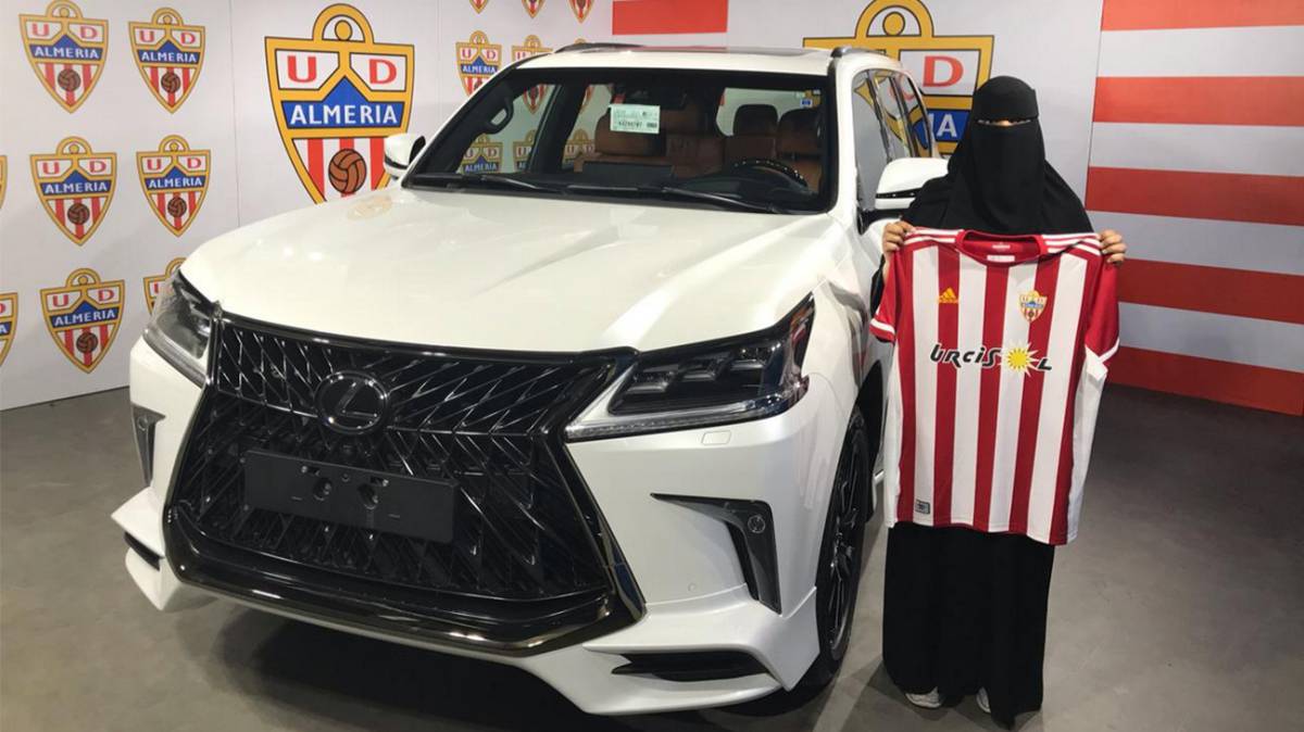 La polémica foto de la ganadora de un coche que sorteaba el jeque del Almería