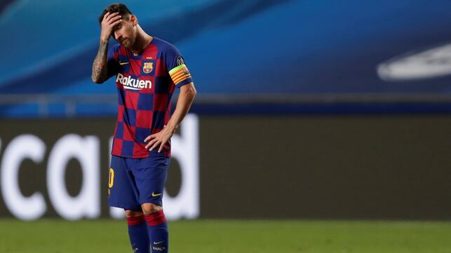 Messi se lamenta tras la derrota ante el Bayern.REUTERS La gran deshonra del Barça: cae humillado ante el Bayern y se queda fuera de la Champions (2-8) RAMON BESA2 Los azulgrana, un saco de golpes, sufren la peor de las derrotas en Europa ante un poderoso Bayern y el club necesita un golpe de timón Piqué: “Es una vergüenza, ni se puede competir así”