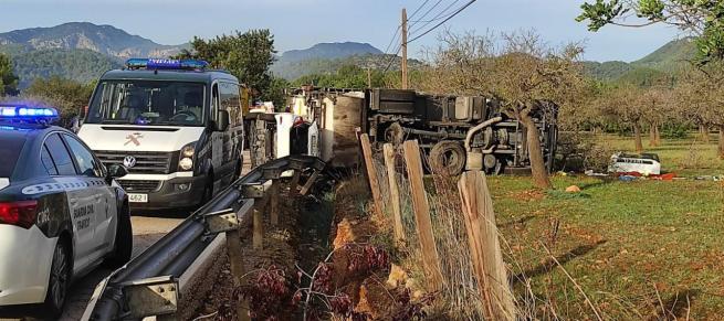 Por causas que se investigan, su vehículo ha colisionado contra un bordillo y ha volcado.